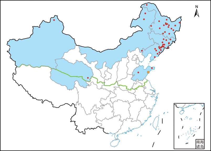 地理分布 黑龙江 大兴安岭(漠河)、哈尔滨(依兰、尚志、五常)、黑河(北安、五大连池)、鸡西(鸡东)、佳木斯(汤原)、牡丹江(海林、东宁)、齐齐哈尔(龙江)、七台河(勃利)、双鸭山(宝清、饶河)、伊春(大箐山、丰林、汤旺、铁力); 吉林 白山(长白、抚松、浑江、江源、靖宇、临江)、吉林(桦甸、蛟河)、通化(东昌、二道江)、延边(安图、敦化、和龙、汪清); 辽宁 本溪(本溪、桓仁)、大连(庄河)、丹东(凤城、宽甸)、抚顺(清原、新宾)、沈阳(浑南); 内蒙古 赤峰(宁城)、呼伦贝尔(根河、牙克石); 山东 青岛、泰安(泰山)、烟台(牟平); 青海 黄南(泽库); 新疆 阿勒泰(布尔津)(张文仲 等,1981;李晓晶 等,2001;徐化成,2001;王月婷 等,2014;崔先江,2015;司洪生,2015;曲红,2018;王鑫,2022;白晓航 等,2023;高宇,2023;金桂香 等,2023;刘洋,2023;马颢铜 等,2023;张扬,2023)。