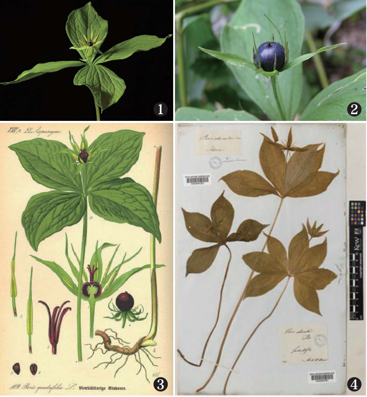 备 注 《中国植物志》记载本种分布于新疆北部,且据说本种在新疆的阿勒泰地区有分布,但未见标本(李恒 等,2015)。因标本鉴定错误, Flora of China 、《黑龙江植物志》及《东北维管束植物考》均记载黑龙江北部(伊春)有该种分布,但依据最新的关于中国重楼属植物的修订观点,四叶重楼在中国不产,无分布(王廷璐 等,2024;JI,2021)。