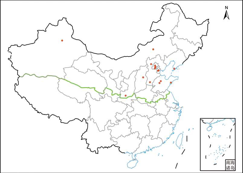 北方分布记录及国内其他分 辽宁: 大连(中山); 内蒙 古: 锡林郭勒(锡林浩特); 东: 济南(章丘)、青岛、泰安(泰山); 河北: 邯郸(丛台)、张家口(宣化); 天津: 和平、河西、西青; 北京: 昌平、房山、丰台、海淀; 山西: 太原(小店); 陕西: 咸阳(杨陵); 新疆: 乌鲁木齐(新市)。