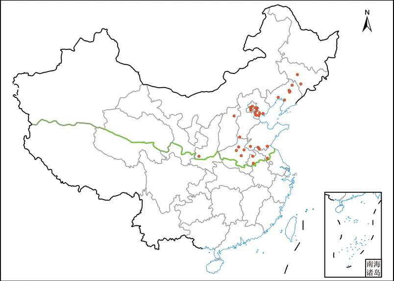 北方分布记录及国内其他分布 吉林: 长春(朝阳)、通化(梅河口); 辽宁: 锦州、沈阳(浑南、沈北、苏家屯)、铁岭(开原)、营口; 山东: 菏泽(成武、牡丹)、济宁(微山)、临沂; 江苏: 宿迁(泗洪); 河北: 邯郸(涉县)、唐山(曹妃甸); 天津: 宝坻、滨海、河西、蓟州、宁河、武清; 北京: 昌平、丰台、海淀、怀柔、平谷、西城; 安徽: 亳州、阜阳; 河南: 焦作(修武)、开封、许昌、郑州(巩义); 山西: 忻州(繁峙); 陕西: 宝鸡(眉县)。
