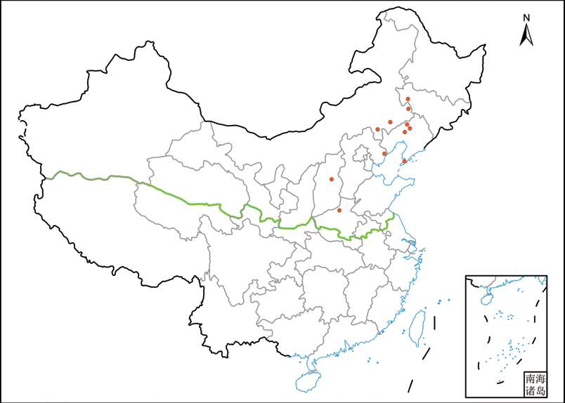 北方分布记录及国内其他分 吉林: 白城(通榆); 辽宁: 大连、阜新(彰武)、锦州(黑山)、沈阳(新民); 内蒙古: 赤峰、通辽(科尔沁左翼中、奈曼); 河北: 秦皇岛; 河南: 新乡(辉县); 山西: 太原(阳曲)。
