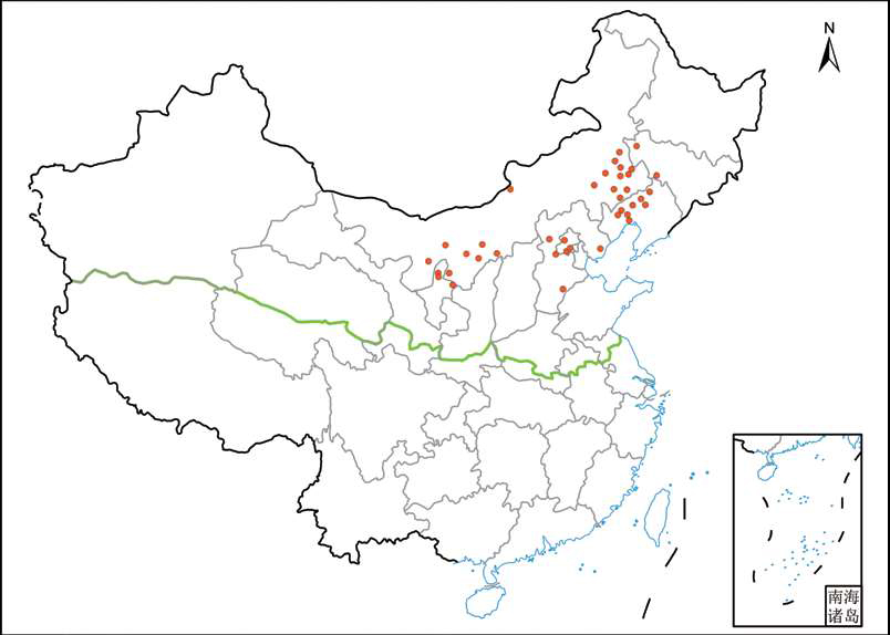 北方分布记录及国内其他分 吉林: 白城(洮南)、四平(双辽); 辽宁: 朝阳(北票、朝阳)、阜新(阜新、彰武)、锦州(凌海、义县)、沈阳(康平、新民); 内蒙古: 阿拉善、巴彦淖尔(磴口)、赤峰(阿鲁科尔沁、敖汉、翁牛特)、鄂尔多斯(达拉特、鄂托克前、杭锦、伊金霍洛、准格尔)、通辽(开鲁、科尔沁、科尔沁左翼中、科尔沁左翼后、库伦、奈曼、扎鲁特)、锡林郭勒(二连浩特)、兴安(科尔沁右翼中); 河北: 保定(涿州)、衡水(景县)、秦皇岛(昌黎)、张家口(怀来); 北京: 大兴、通州、延庆; 宁夏: 吴忠(盐池)、银川(金凤、永宁)。