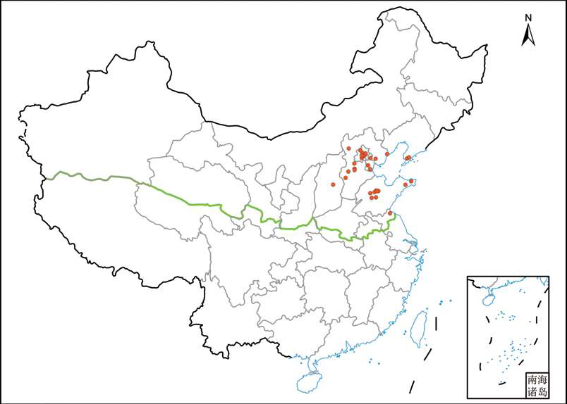 北方分布记录及国内其他分布 辽宁: 大连(甘井子、金州); 山东: 滨州(邹平)、济南(市中、章丘)、莱芜(莱城)、泰安(泰山)、威海(环翠、乳山)、淄博(张店、周村); 江苏: 连云港; 河北: 保定(莲池、清苑、曲阳、易县)、秦皇岛(山海关)、石家庄(鹿泉)、唐山(开平)、张家口(桥东); 天津: 滨海、蓟州、武清; 北京: 昌平、朝阳、房山、海淀、门头沟、顺义、延庆; 西: 晋中(榆次)。