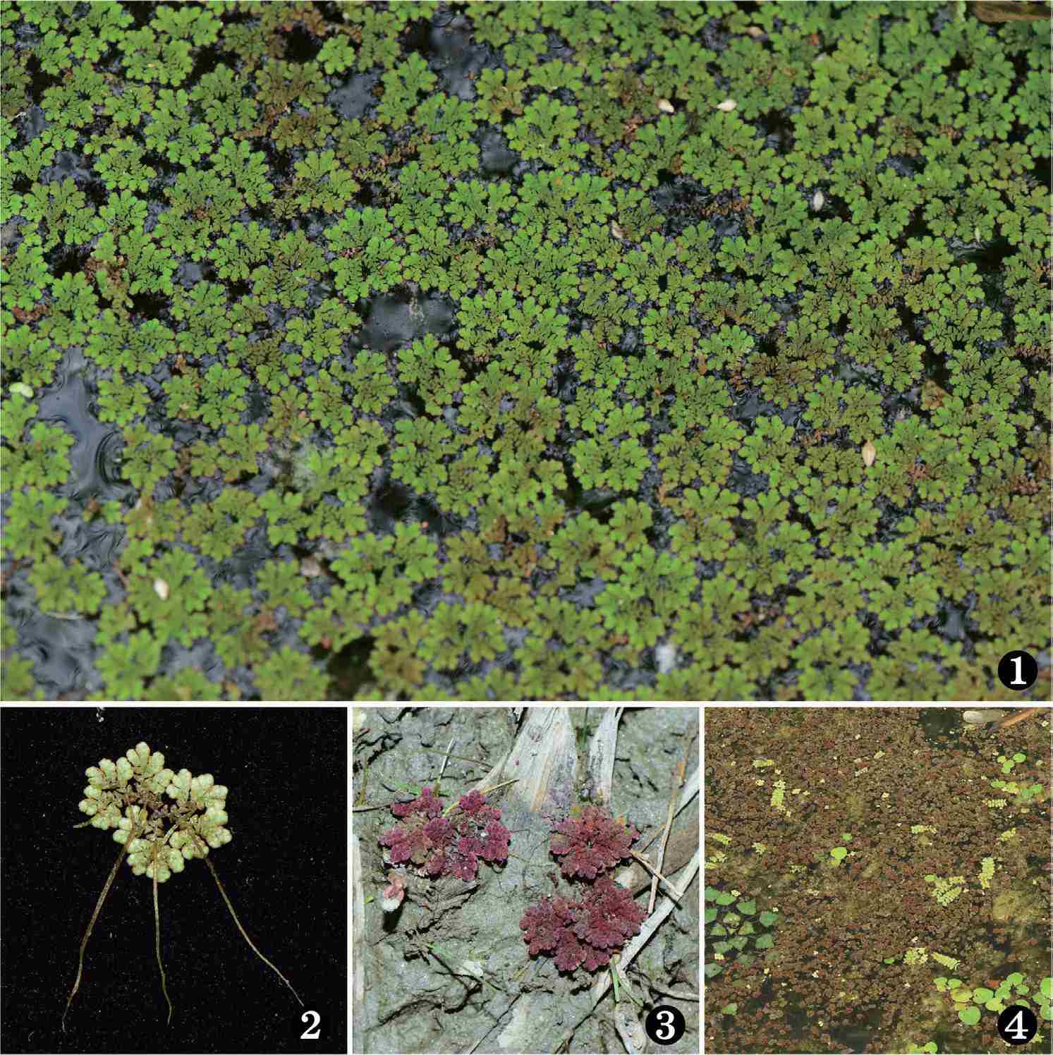 识别特征 多年生水生漂浮植物。根状茎平卧或近直立,羽状分枝。叶无柄,互生,覆瓦状排列,常为绿色,受低温胁迫影响变红。大孢子果橄榄形,成对着生于分枝处,内含大孢子囊1个,大孢子囊外壁有3个浮膘。