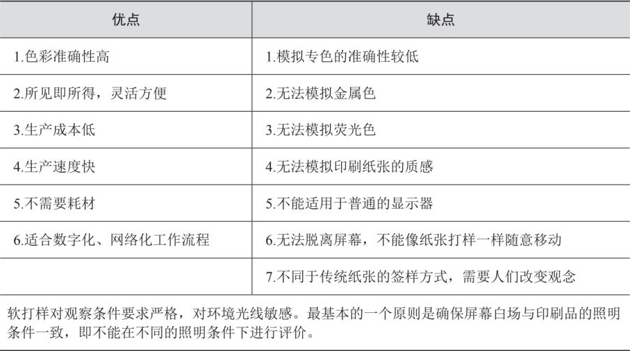 表2-1 软打样技术的优点与缺点