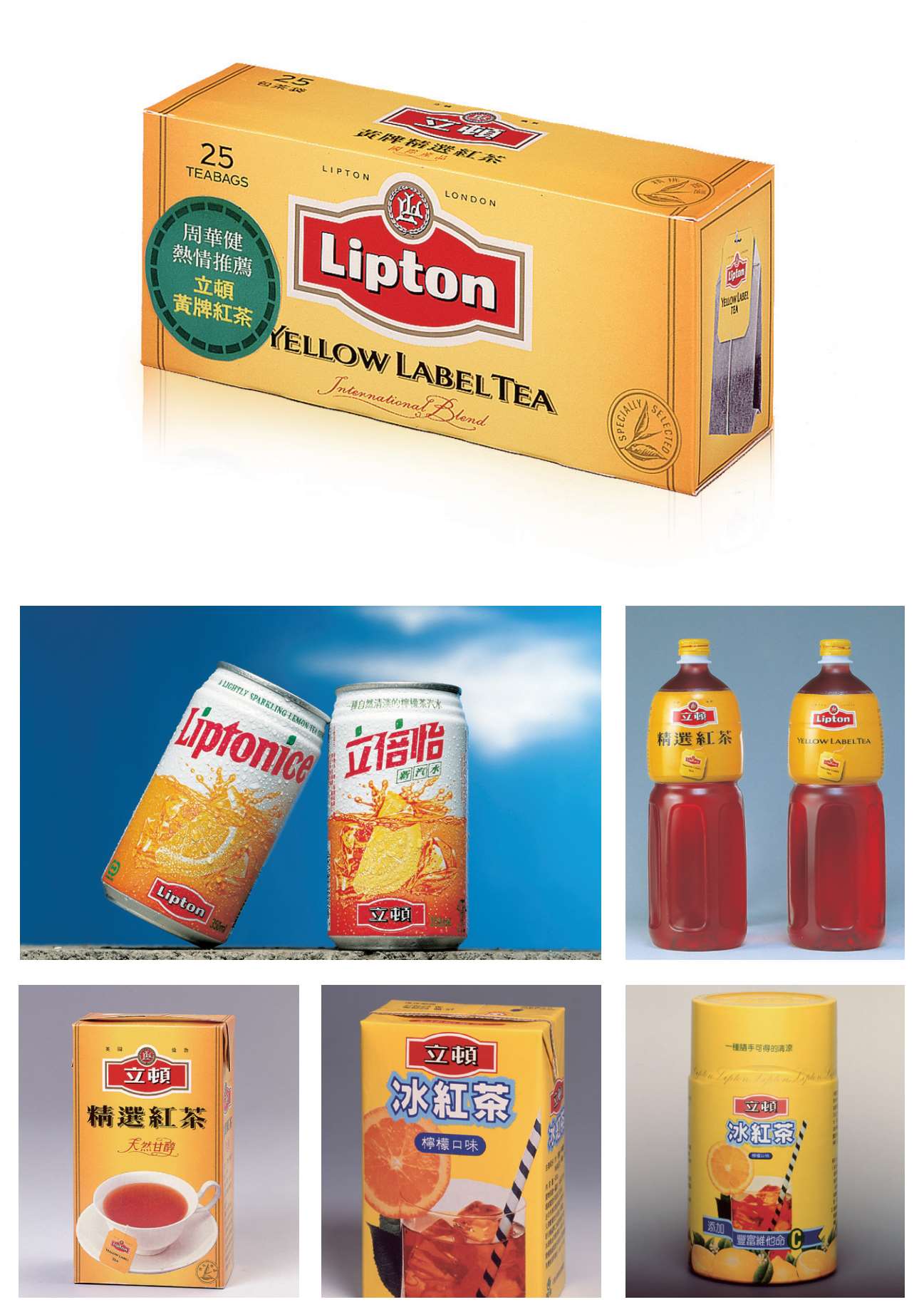 图1-1 上图为立顿红茶的经典包装,延伸到下图的包装上,个个都承袭经典