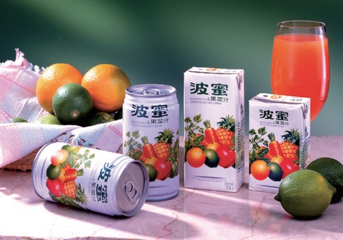 图1-2 消费者对果菜汁的包装印象,就是一堆蔬果、菠萝、芹菜等,每家的包装都用这些元素(同化),而为求种类的区别化,波蜜更新版的果菜汁包装,长期经营下来,自己树立了个体的区别化及识别化(异化)印象。