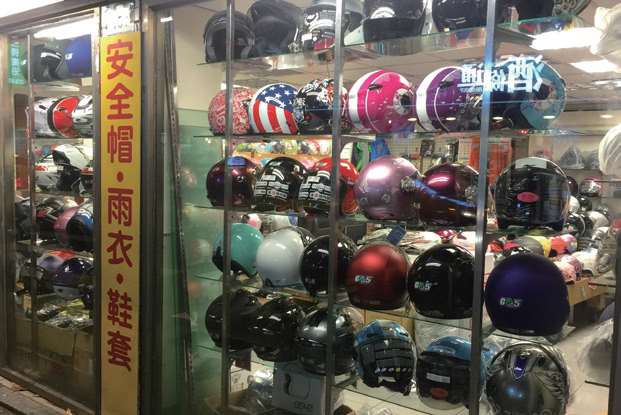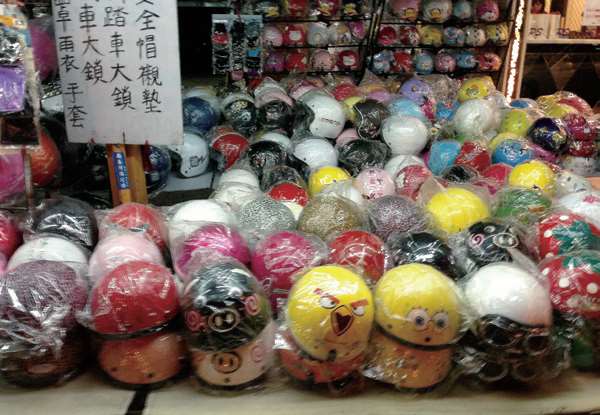很多商家对于所售卖的商品大都只停留在“零售”的阶段,在马路边经常看见商家把一些杂货堆到人行道上展售,如图1-10所示的安全帽,零售商将产品装入透明塑料袋直接售卖。对于安全帽这类产品讲求的是安全,这样的陈列方式,消费者看不到品牌的标识与信息,怎能让消费者感到安全呢?图1-11是经过包装设计规划过的安全帽,外盒上除了有清晰的品牌标识及商品信息外,还在包装箱的侧边设计了两个开口,方便消费者提着走,实现了包装的目的及基本功能。这也充分说明了“产品”与“商品”间的差异。