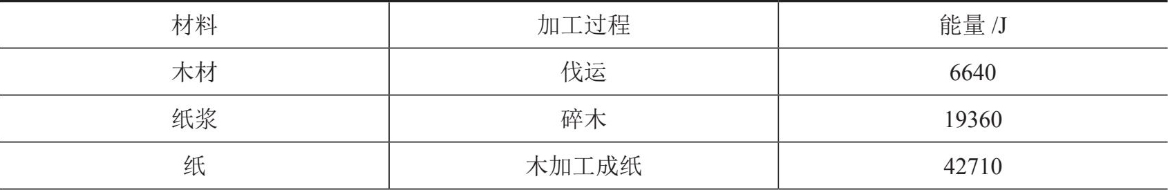 纸包装的原材料大多是木材、禾草与回收废纸,在造纸过程中,主要的能源消耗(约85%)用于从木材中分离出纤维和烘干纸张。表3-6为生产1t木材、纸浆纸、塑料所消耗的能量。