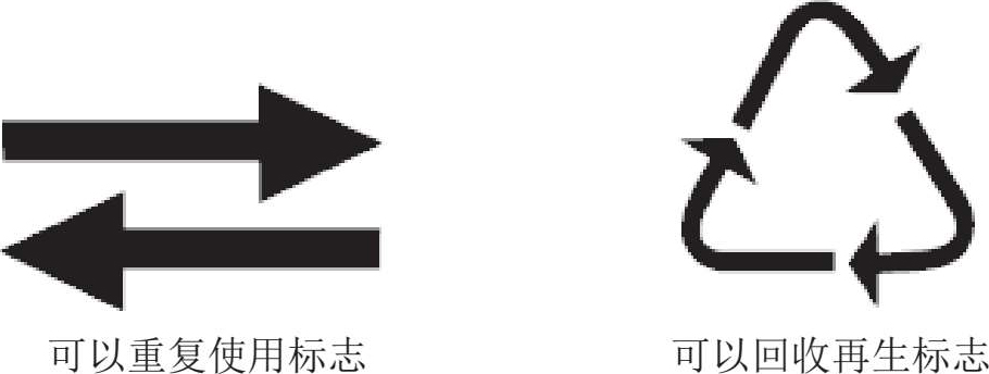 对凡符合“可以重复使用”和“可以回收再利用”条件的包装,使用如下图示标志。