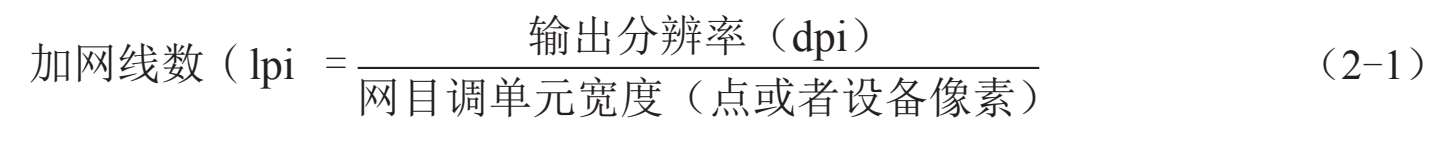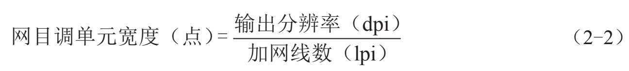 例如,输出分辨率为 2400 dpi,一个网目调单元的宽度为 16 点(即 16 个设备像素),则加网线数为 2400/16=150 lpi。