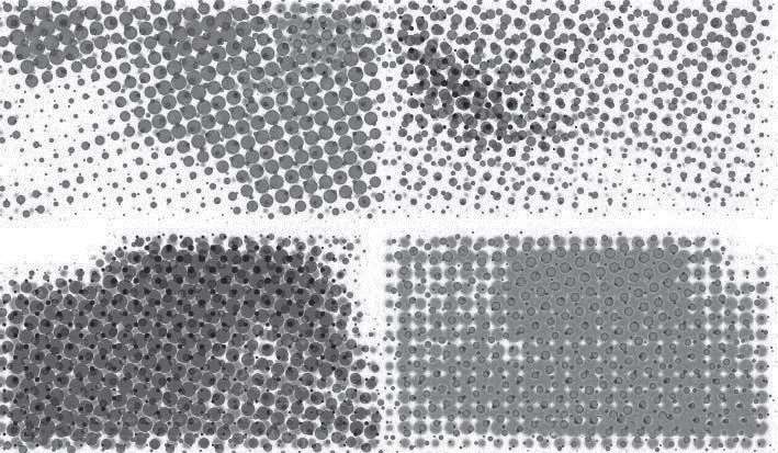 圆形网点无论是在亮调还是在中间调的情况下,网点之间都是独立的,只有暗调的情况下才有部分相连,对于阶调层次的表现能力不佳,四色印刷中比较少采用,如图2-1所示。