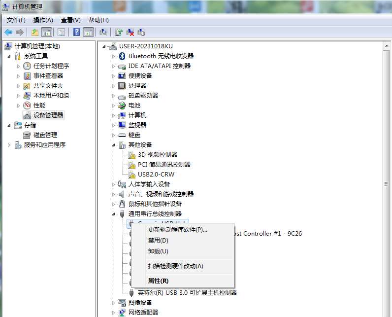图 3-7 设备管理器的“通用串行总线控制器”