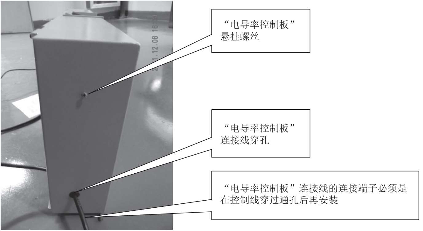 (12)“电导率控制板”连接线与各电源线、控制线、信号线的连接:注意各线路的固定(见图 5-13 和图 5-15);