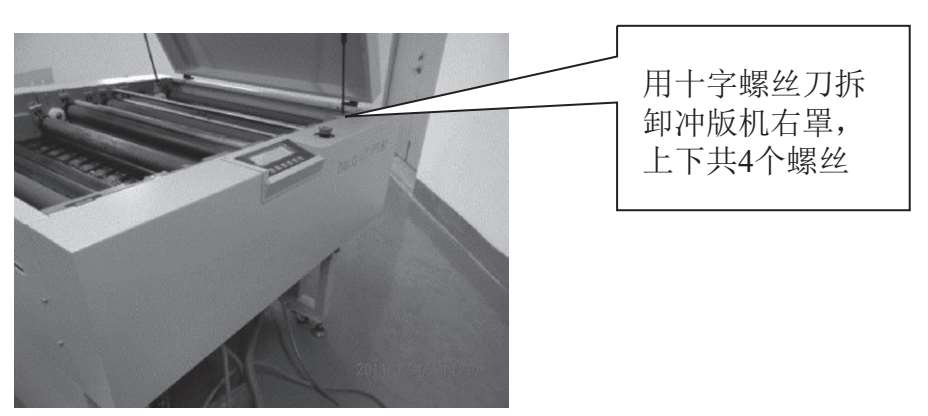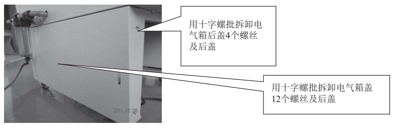 (1)首先必须关掉冲版机电源,而后拆卸电气箱盖及后盖(见图 5-1);
