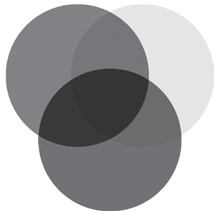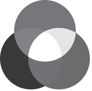 两种或两种以上的色光相混合时,会同时或者在极短的时间内连续刺激人的视觉器官,使人产生一种新的色彩感觉,这种色光混合被称为加色混合。这种由两种以上色光相混合,呈现另一种色光的方法,称为色光加色法。色光加色法的三原色是红(R)、绿(G)、蓝(B),如图2-5所示。