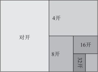 版面的大小称为开本,开本以全张纸为计算单位,每全张纸裁切和折叠多少小张就称多少开本。我国习惯上对开本的命名是以几何级数来命名的,如图2-27所示。
