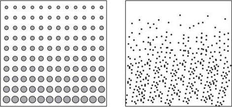 图2-33 数码打样调幅网点(左)和调频网点(右)