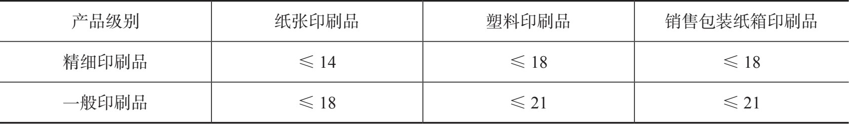 如表3-1、表3-2、表3-3所示列出了不同柔性版印刷品印刷要求,可供参考比对。