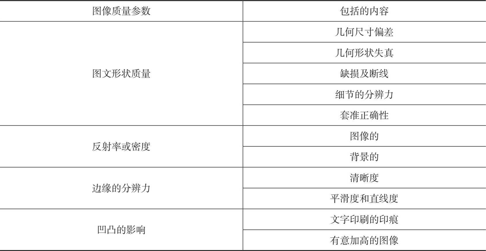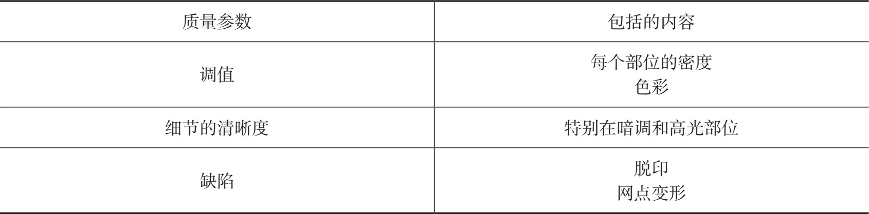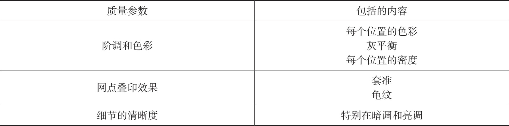 网目调印刷品能够通过细节的表达传递一个场景、物体或人物的大量信息。应当具有一个好的“均匀网目调”所应有的特性及预期的密度分布,以便达到图像的预期效果。对这种印刷图像有影响的质量参数如表3-5所示。