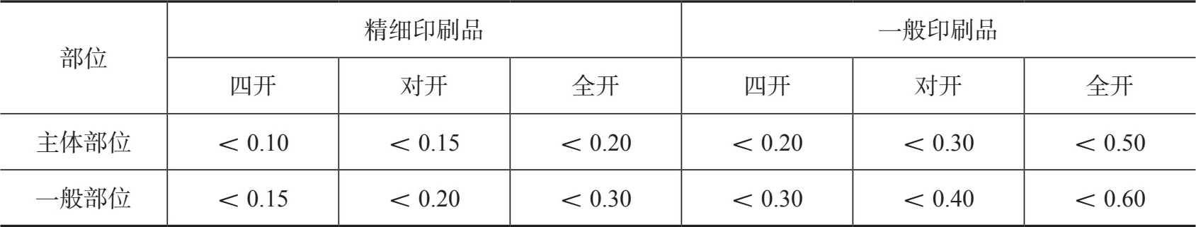 图像轮廓清晰,套印允许误差如表3-10所列数据。