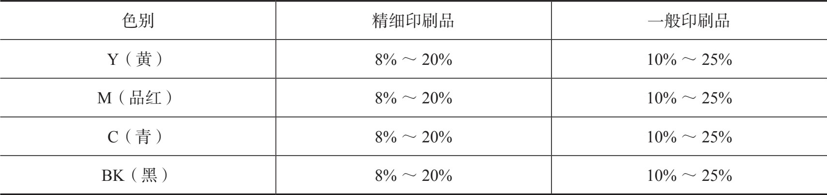 多色网目调的印刷质量参数如表3-6所示。这类印刷品涉及复杂得多的色彩平衡等问题。