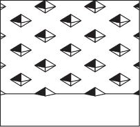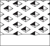 电子雕刻机可以直接使用分色加网的底片进行制版,故扫描底片可以在印前的桌面出版系统中制作获取,然后使用吊车将印版安装在电子雕刻机上,雕刻前清除版面的油污、灰尘、氧化物。把扫描底片平服地粘贴在原稿滚筒上。根据原稿(扫描片)的要求和油墨的色相,结合印刷产品制定试刻值。例如,装饰印刷的纸张比较粗糙,吸墨性强,雕刻深度须在45~50μm才能达印刷要求,必须调整雕刻放大器上的电流、电压。最后扫描头对原稿进行扫描,雕刻头与扫描头同步运转,印版滚筒表面被雕刻成深浅不同的网穴。新型的电子雕刻机有三种形状的网点角度,可以在操作时任意选择,如图3-36所示。