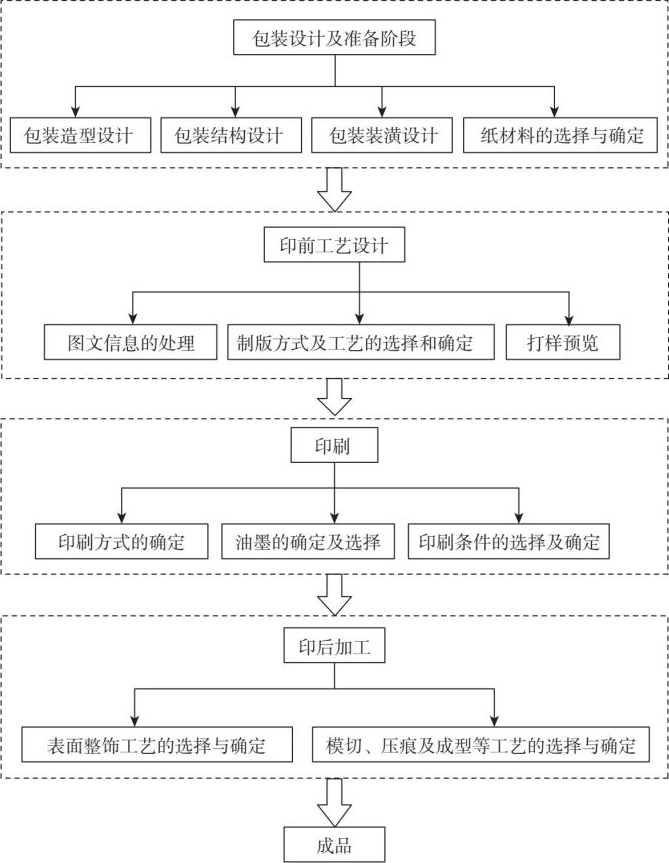 以纸包装为例,一个包装印刷工艺设计的流程如图1-8所示。