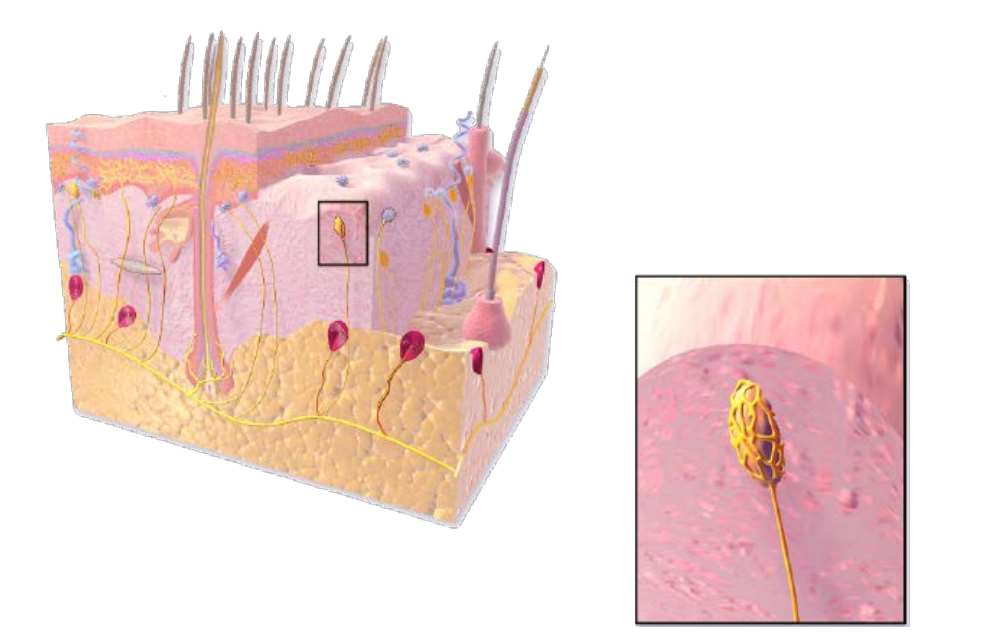 皮肤是人体非常奇妙的一个组成部分,遍布于全身的触觉细胞构成了我们对外界细微变化的反馈。我们能够感受到清风拂面的平静,也能够立即躲避产生痛觉的事物。触觉中以手指尖最为敏感,我们的全身密集分布着麦斯纳小体(Meissner corpuscles),如图2-3所示。皮肤是机械感觉的末端器官,对于10~50Hz的振动最为敏感,尤其是手指尖的皮肤,通过触摸我们可以获得不同的反馈。在数字媒介面前,我们可以触控键盘、屏幕,在此过程中配合声音、视觉,设备会对我们的动作产生物理方式的反馈,并释放信息。