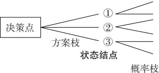决策表法是一种计算期望值的表格形式,决策树法则是一种图解形式。决策树形式的优点是:第一,可明确地比较各种可行方案的优劣;第二,对某一方案的有关因素能直观地描述,特别适用于复杂问题的多层次决策。决策树的结构如图 2-2 所示。