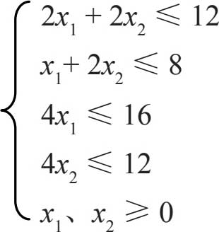 ③ 求解各种待定参数的具体数值。求解过程略: x 1 =4, x 2 =2; S max =2×4+3×2=14。