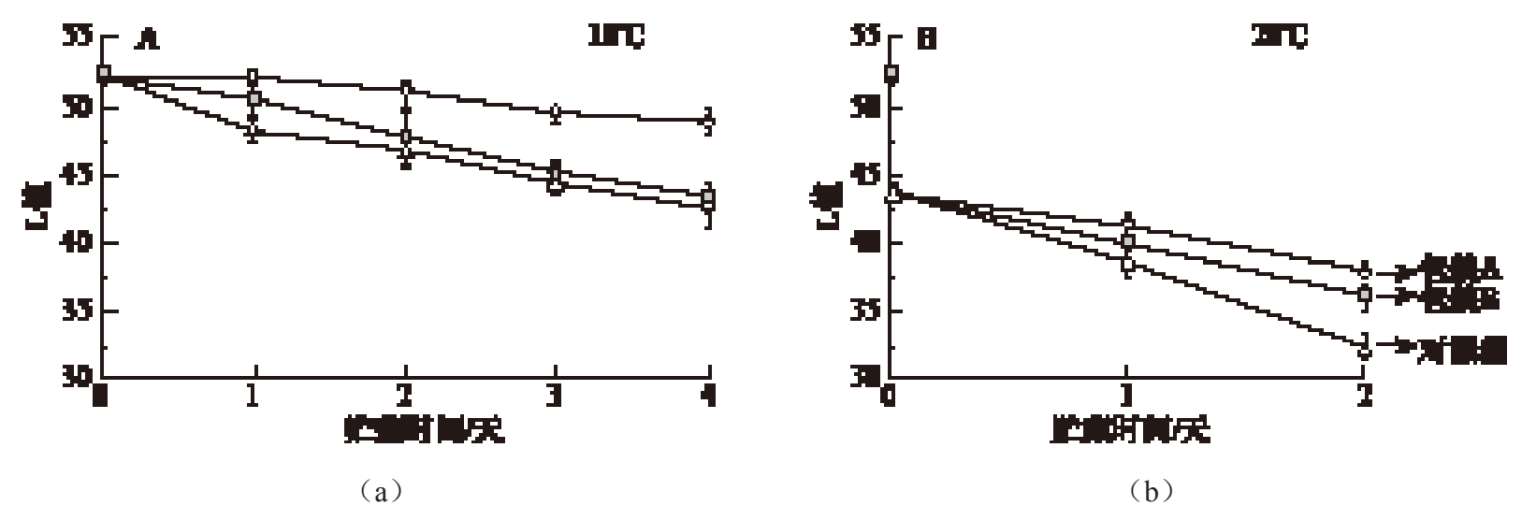 (a)贮藏温度为10℃;(b)贮藏温度为20℃ [29]