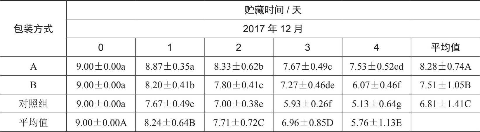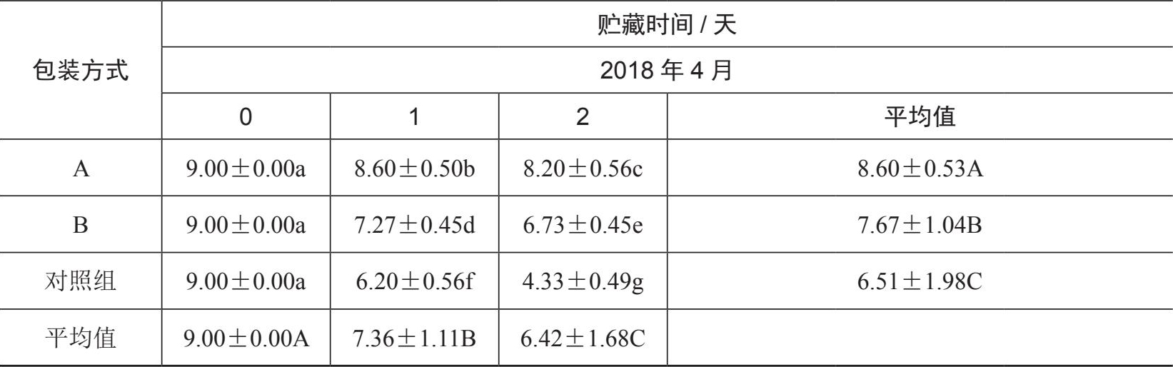 为了模拟实际的零售条件,对草莓进行短链配送。2017年12月采收的草莓的贮藏条件:温度为10℃、相对湿度为70%、贮藏时间为4天,2018年4月采收的草莓的贮藏条件:温度为20℃、相对湿度为62%、贮藏时间为2天。采用3种包装方式,具体包装方法见表3-1。