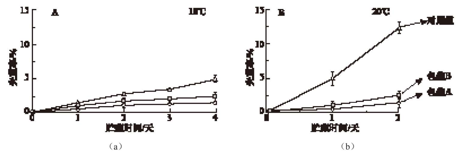 (a)贮藏温度为10℃;(b)贮藏温度为20℃ [29]