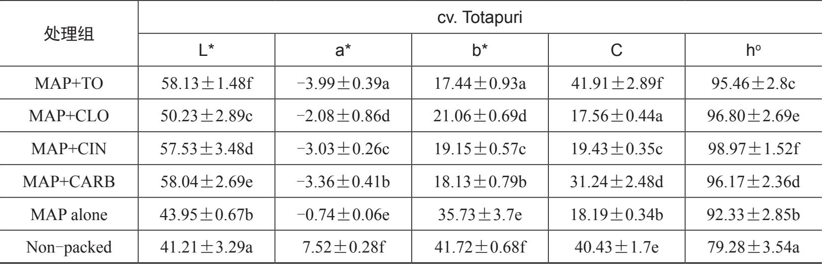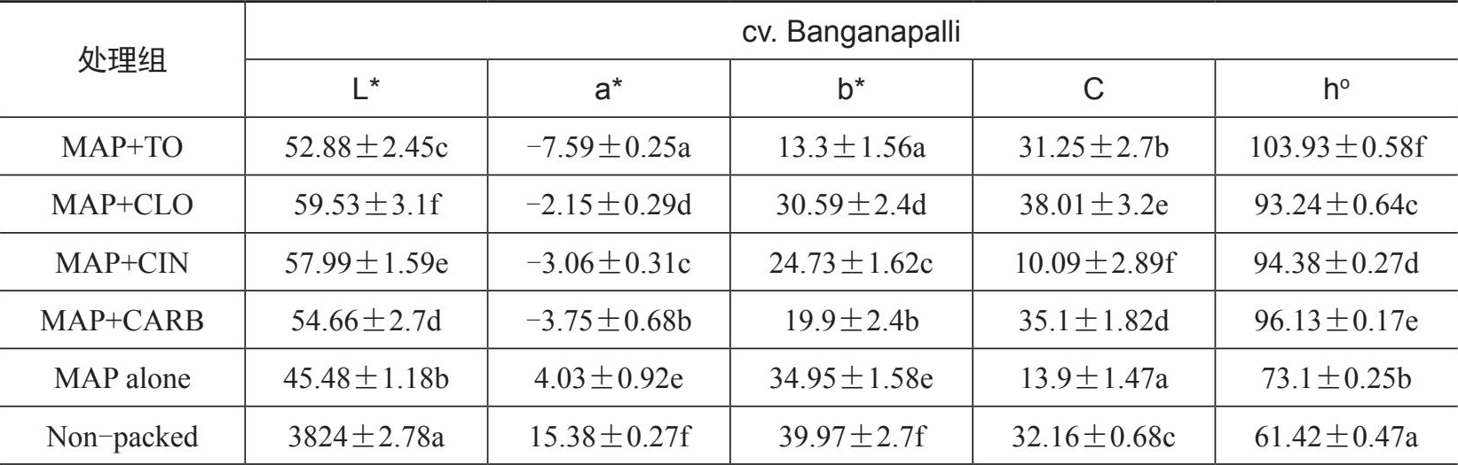 表4-4 贮藏期间各处理组杧果(cv.Banganapalli和cv.Totapuri)的颜色参数 [4]