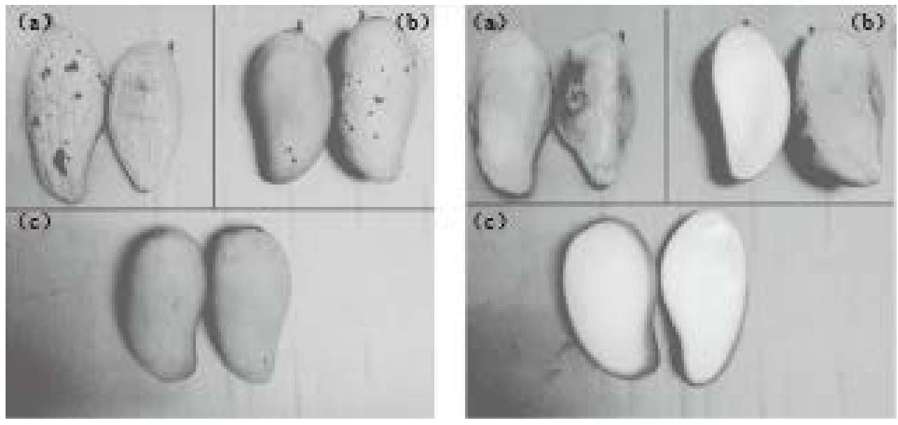 图4-14 贮藏第21天时,各处理组杧果的照片(后附彩图)