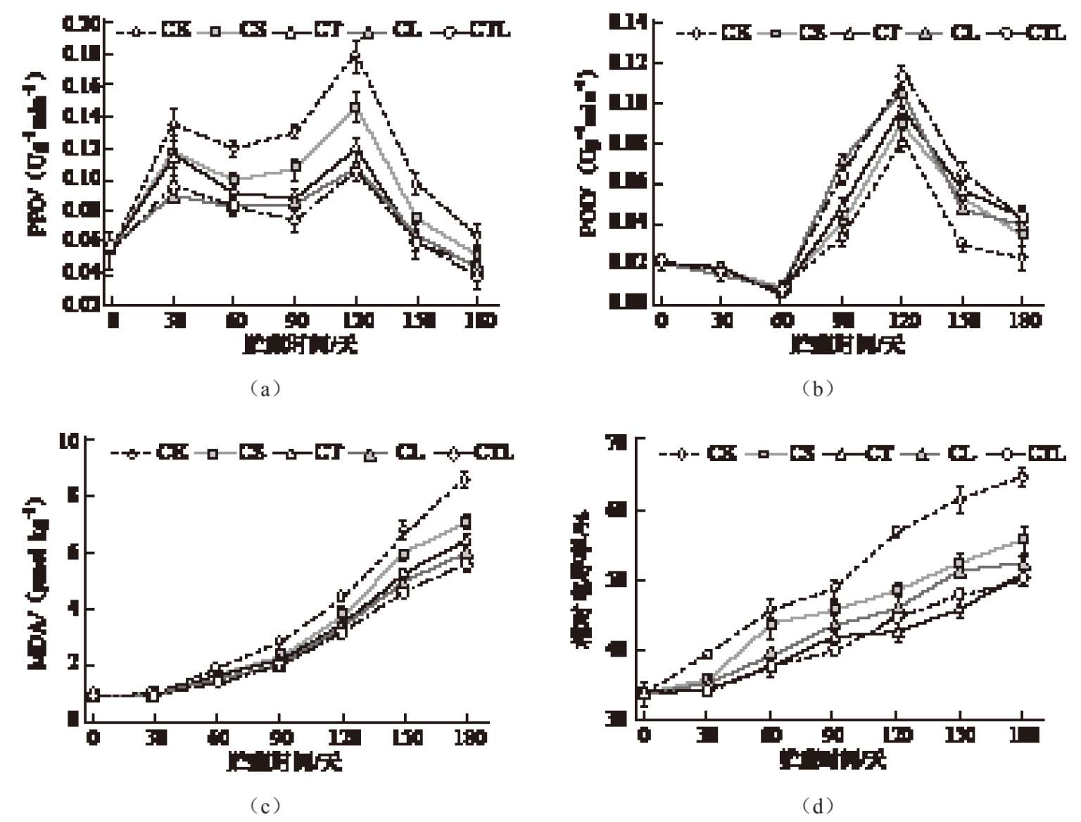 (a)PPO活性;(b)POD活性;(c)MDA含量;(d)相对电导率 [45]