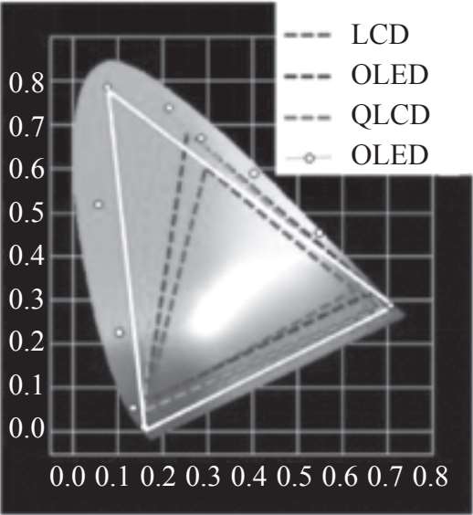 图1-14 CIE色品图显示 QLED在显示中有着很高的色彩饱和度