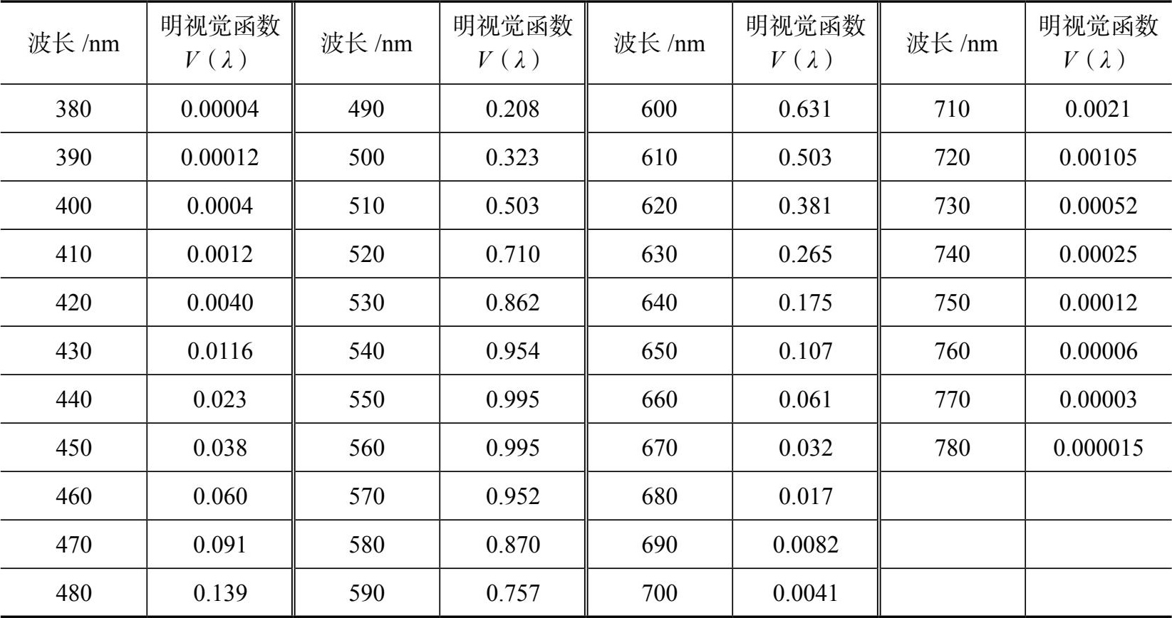 表3-1 明视觉的光谱光视效率数据