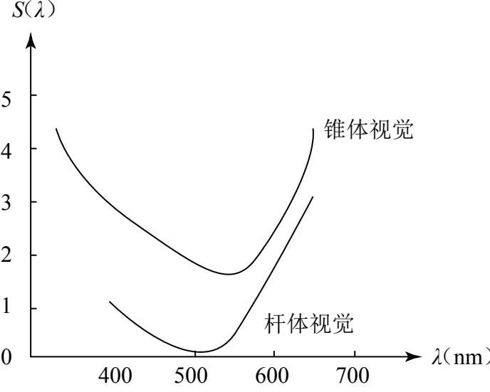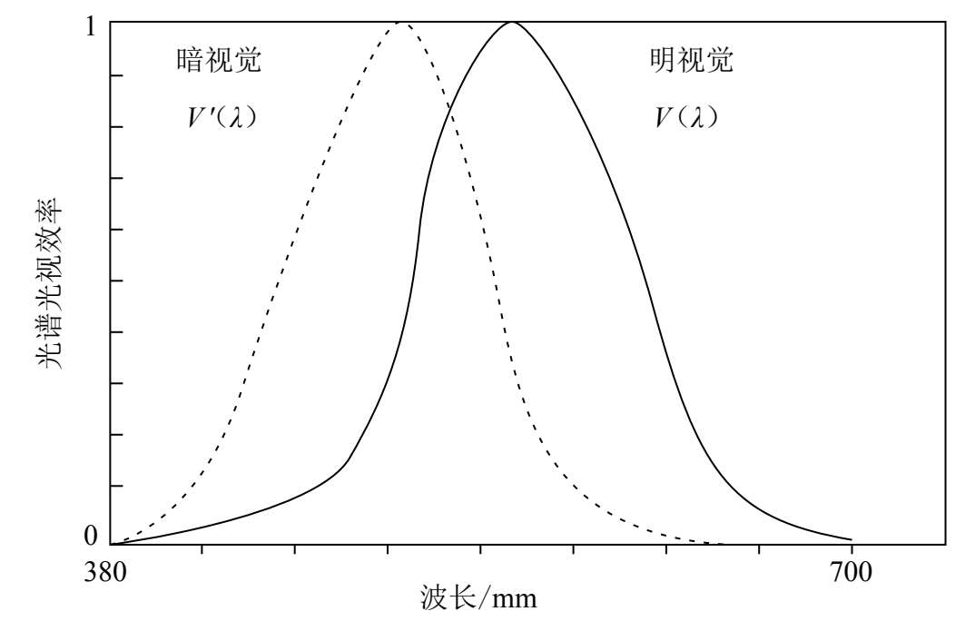 图3-7 明视觉和暗视觉的光谱光视效率