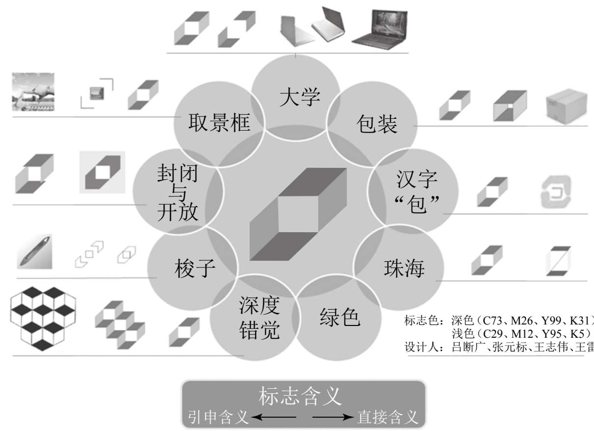 利用深度错觉设计的暨南大学包装工程标志及含义,如图3-15所示。