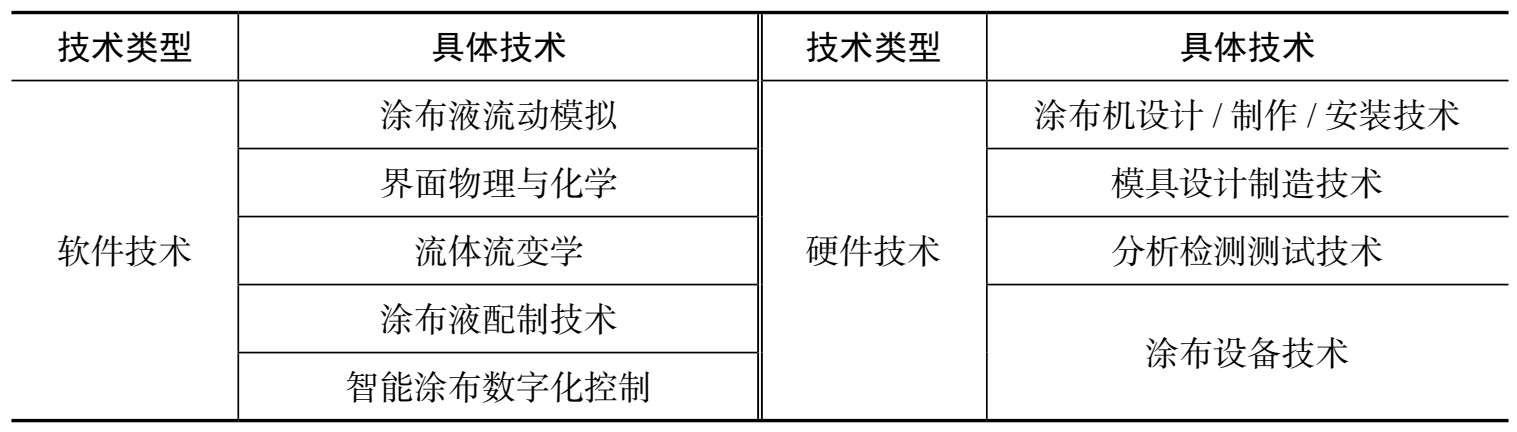 涂布生产线软件技术和硬件技术构成,大致如表 1-3 所示。