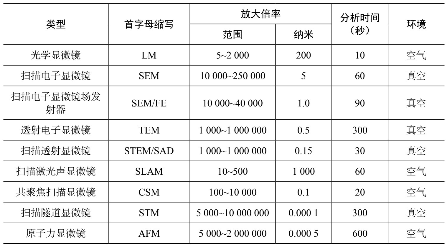 光学显微镜是第一阶段分析的基本工具。在显微镜下,辅助肉眼观察分析是确定缺陷特征的最佳方式。表 1-5 是部分显微镜功能对比。在视频显微镜中,显微镜的目镜可以被电视摄像机和监视器取代,在高分辨率的监视器上观看图像,可以缓解视觉疲劳。
