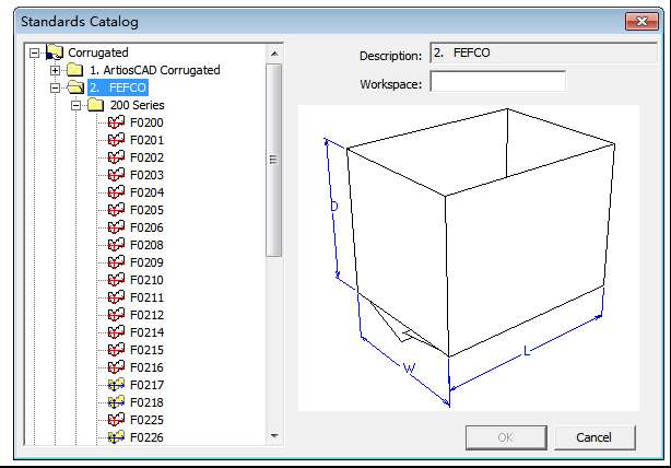 1.双击桌面ESKO快捷方式 ,打开软件起始页面,单击菜单栏File>Run a Standard,打开Standards Catalog对话框。在Standards Catalog对话框中,单击所需要的盒型,单击OK,如图2-35~图2-36所示。