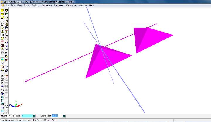:此工具可以对所选设计进行复制。在状态栏Number of copies选项中输入需要复制的数目,Distance选项中输入复制的三维图形的间距。然后根据提示选择提取点(Pickup Point)。绘制出的X、Y、Z轴穿过该点。选择设定方向的轴,如图3-8所示。