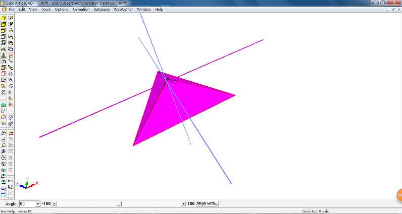 6.旋转设计工具(Rotate Designs) :此工具可以使设计进行旋转。当使用此工具时,需要选中一个轴或线,使其绕轴或线旋转。在状态栏Angle选项中输入旋转的角度或者利用拖拽的方法进行,如图3-9所示。