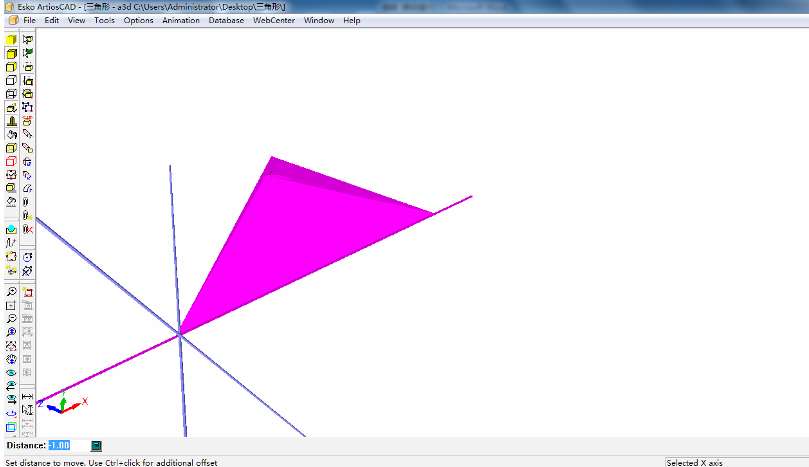 2.移动设计工具(Move Designs) :选择一个提取点,以此点为中心,三维轴将会出现,选择一条轴或一条线,以设置所选设计的移动方向。单击选择X轴线,三维图形便可沿着此轴线移动,如图3-7所示。