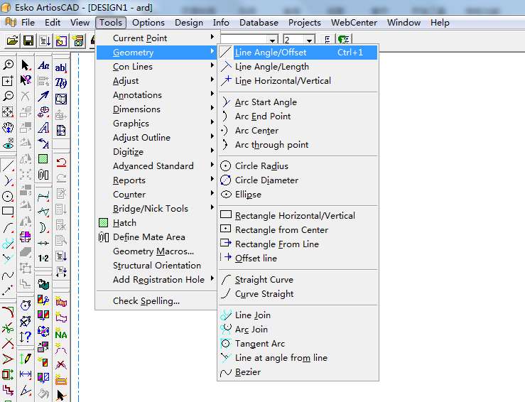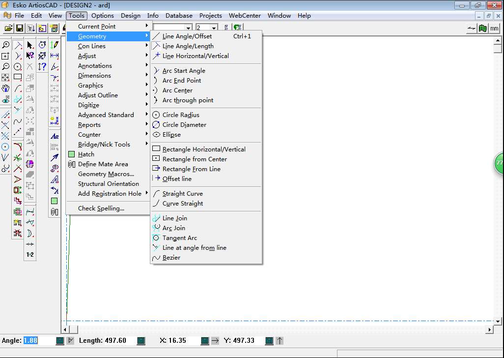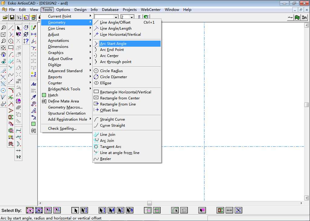 单击菜单栏Tools>Geometry,或者从工具箱中选择 ,即启用弧线工具,如图2-7所示。