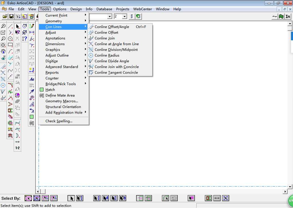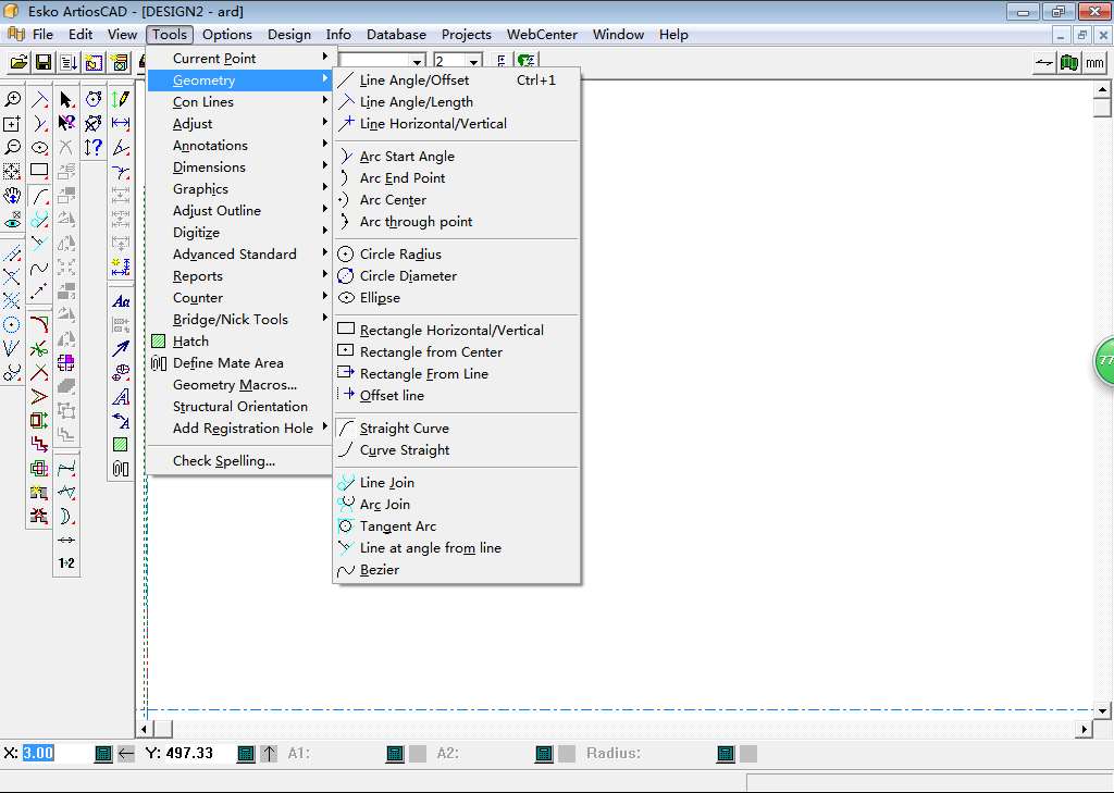 ArtiosCAD软件的绘图基本工具分为线工具、圆工具、椭圆工具及矩形工具等。