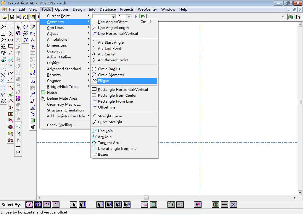 单击菜单栏Tools>Geometry,或者从工具箱中选择 ,即启用椭圆工具,如图2-6所示。